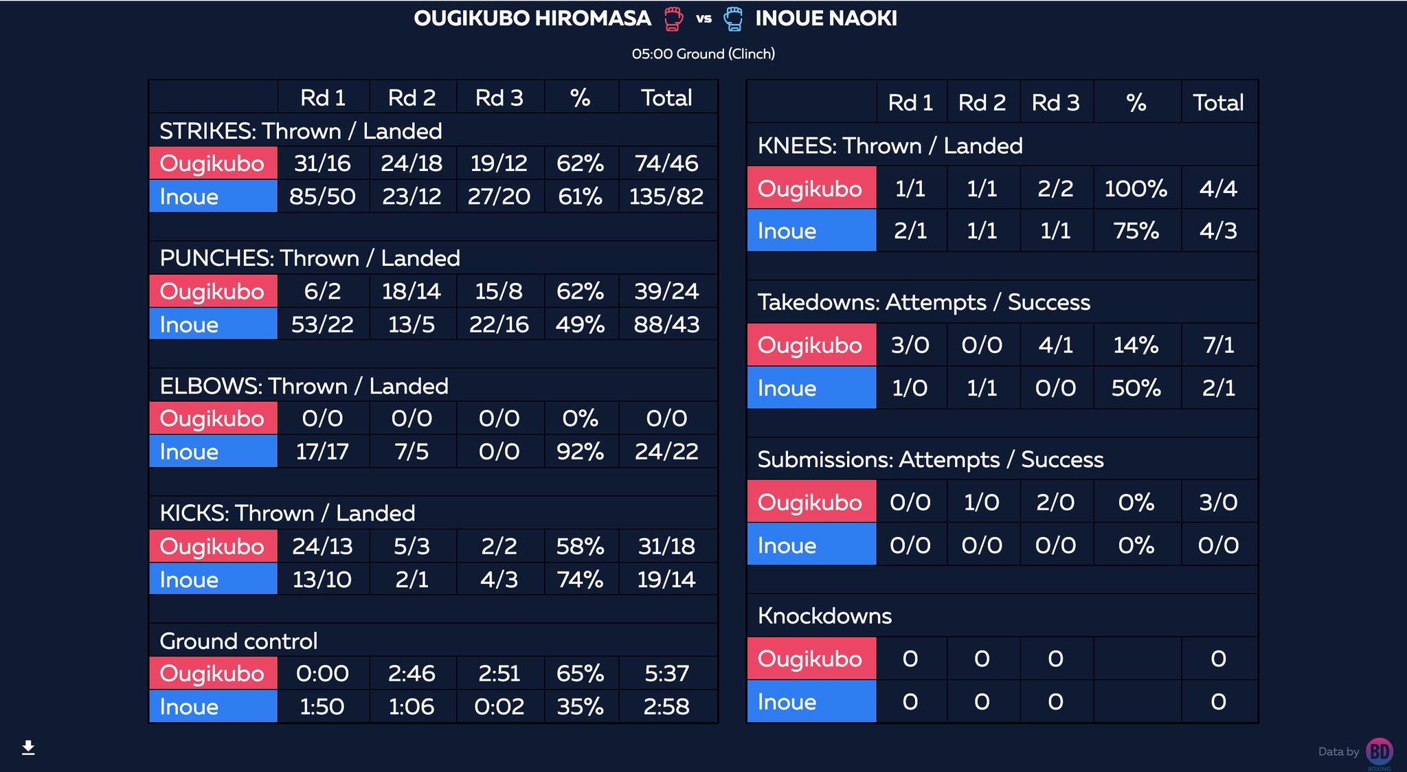 扇久保vs井上 Fight stats