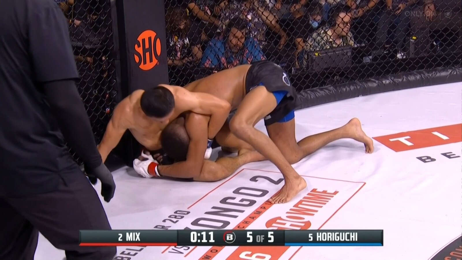 堀口がトップ取り返してガードポジションになった時に