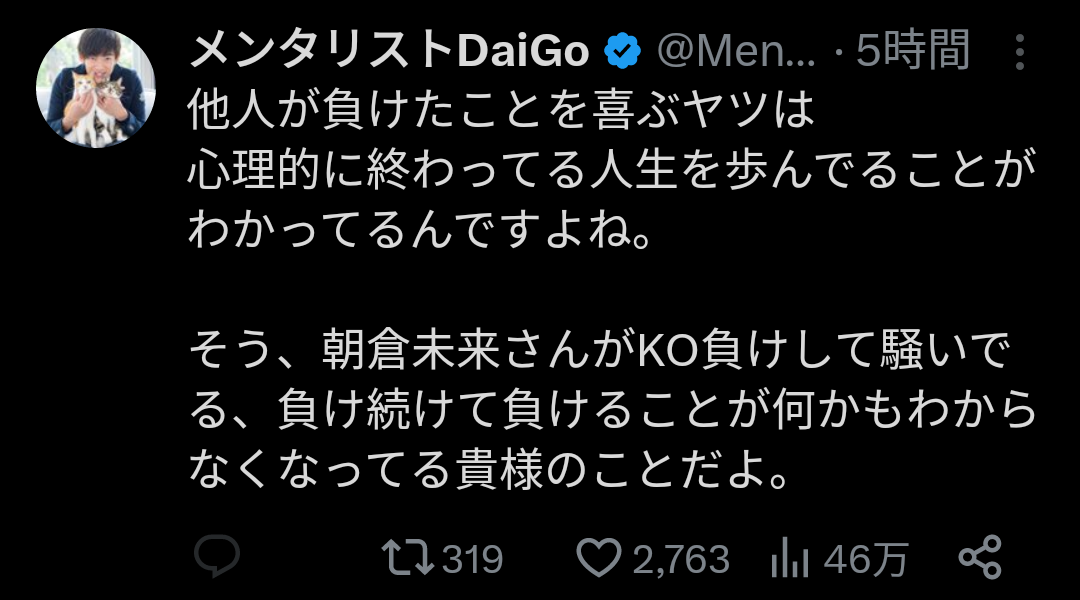 ・主語がすべて未来さん、YA-MANが勝ったことが何も話題になってない
